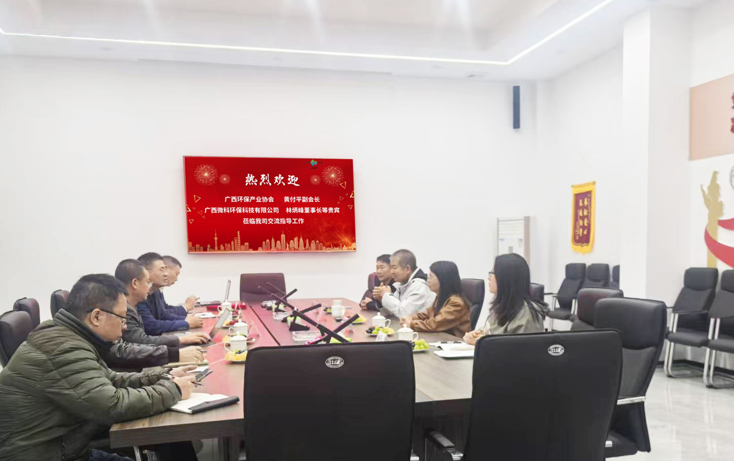 ?? ? ?2025年12月8日廣西環(huán)保產(chǎn)業(yè)協(xié)會(huì)黃付平副會(huì)長(zhǎng)、廣西微科環(huán)??萍加邢薰玖直宥麻L(zhǎng)等貴賓一行,專(zhuān)程蒞臨浙江川寧環(huán)保科技有限公司交流指導(dǎo)。? ? ? ?